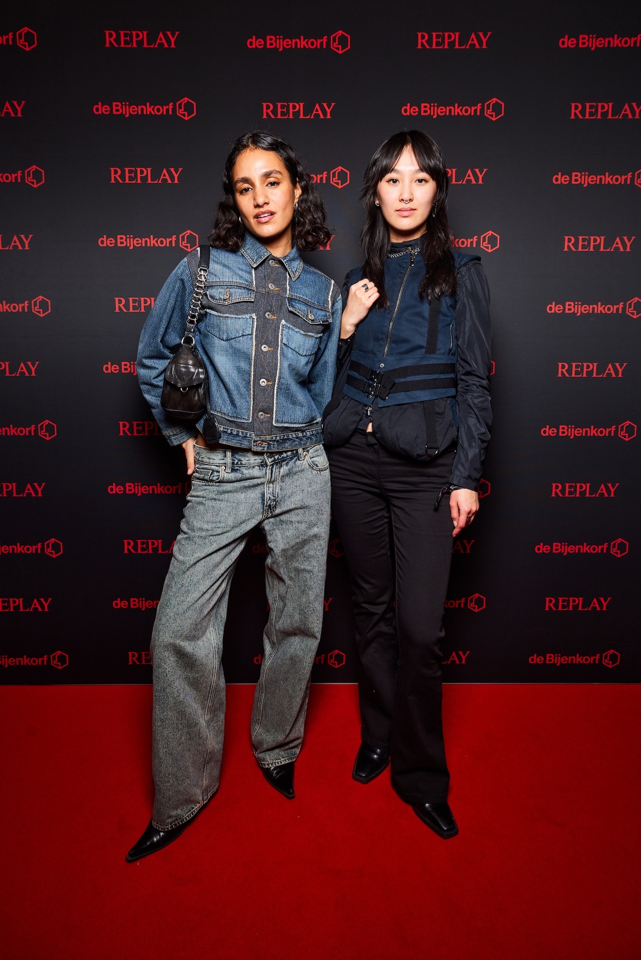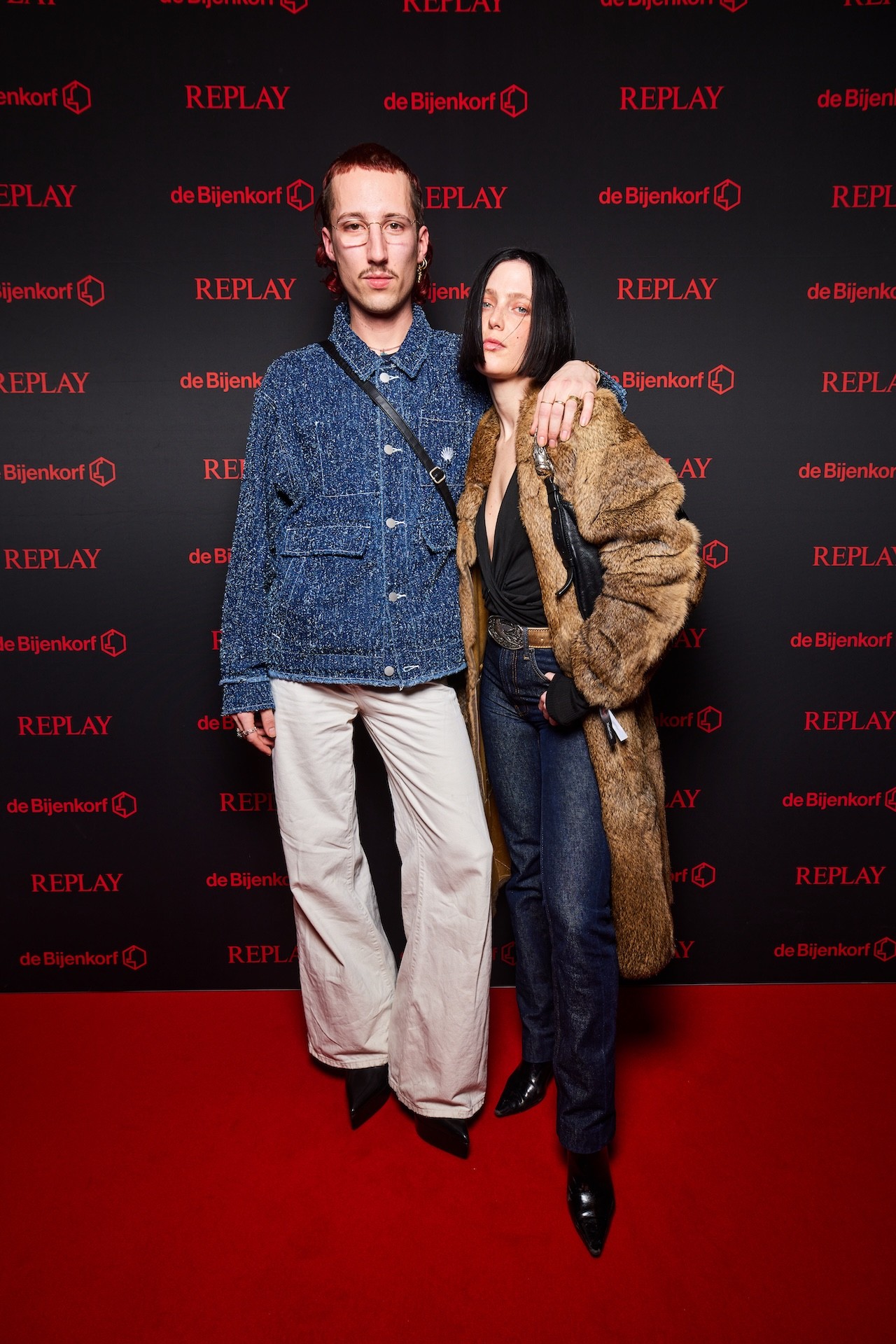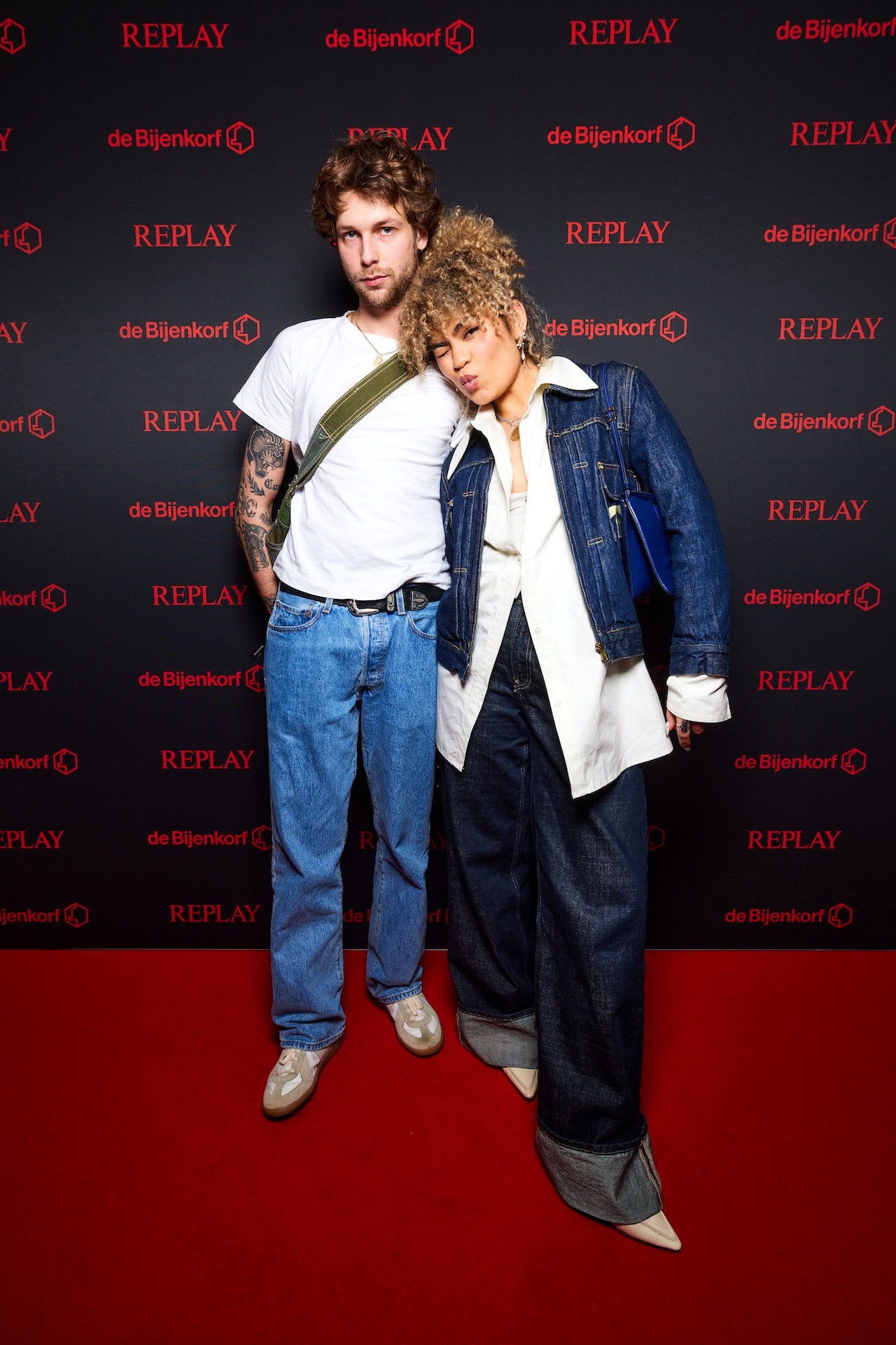captured the red carped photo wall during replay's launch event celebrating the return of 9zero1 jeans and the collaboration with martin garrix at de bijenkorf. the event, attended by rose bertram, stephanie abu-sbeih, and naz kawan, marked the debut of the exclusive ✚✖ capsule collection.