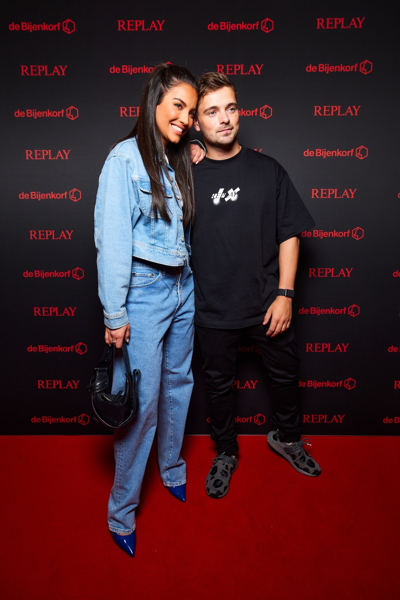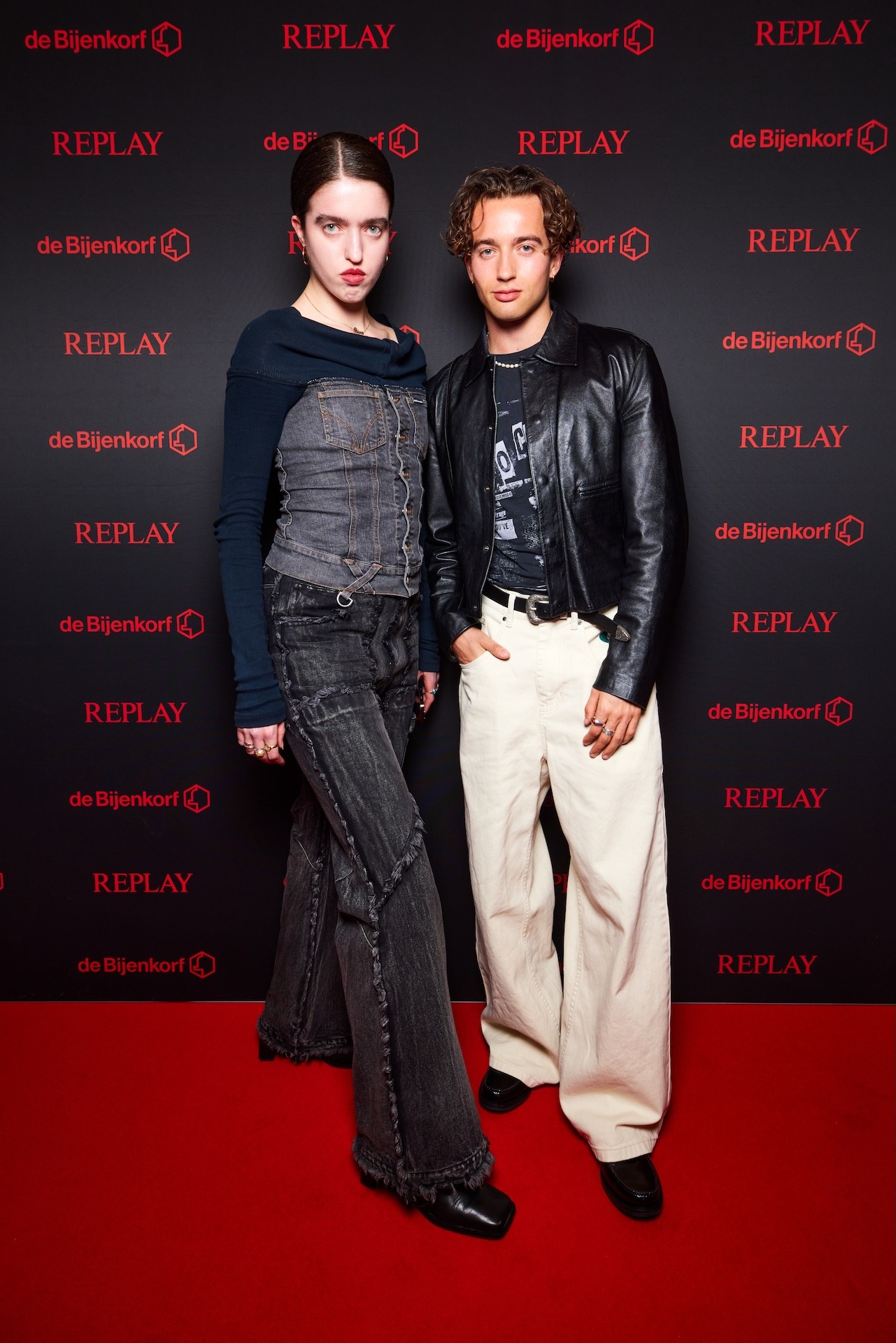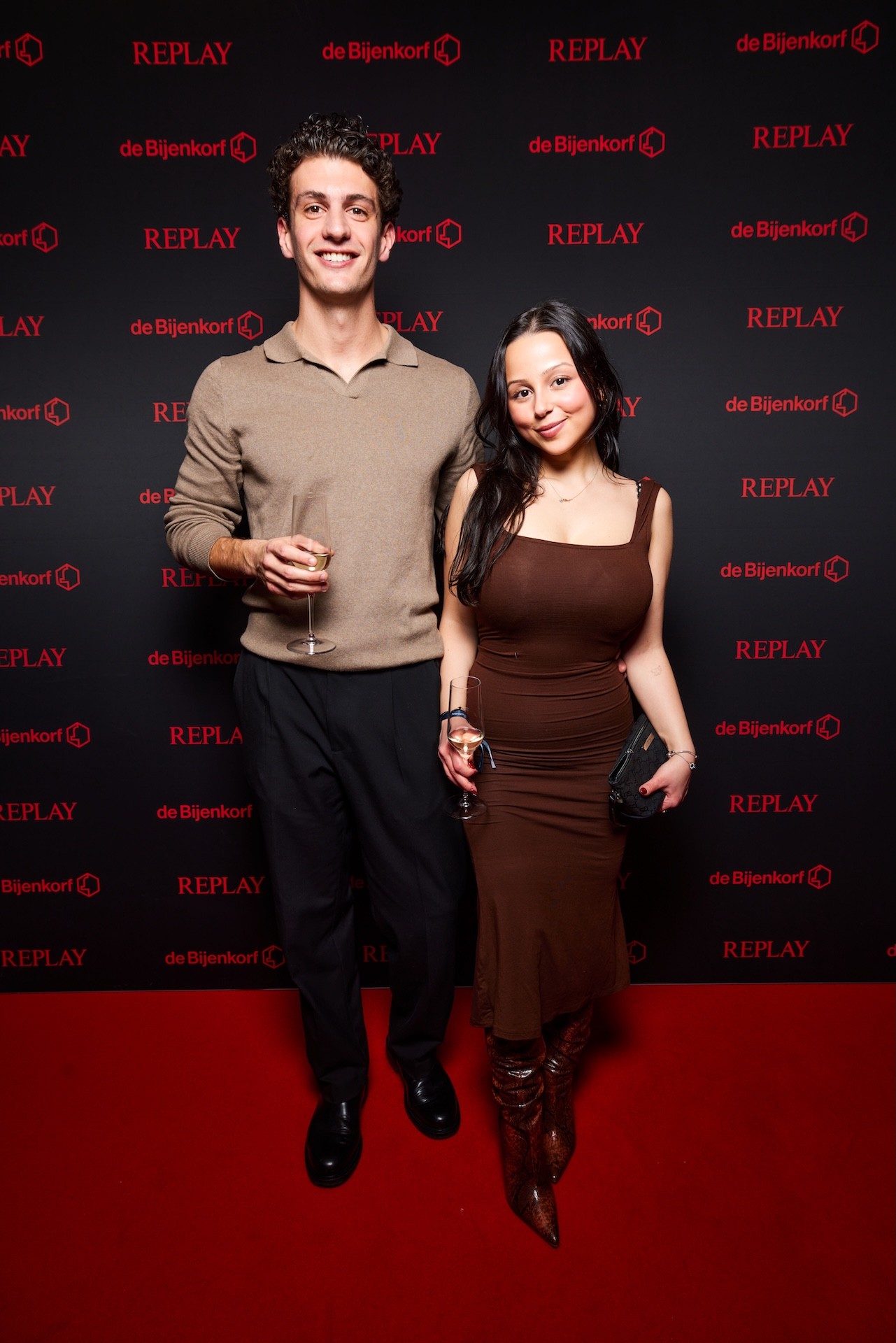 captured the red carped photo wall during replay's launch event celebrating the return of 9zero1 jeans and the collaboration with martin garrix at de bijenkorf. the event, attended by rose bertram, stephanie abu-sbeih, and naz kawan, marked the debut of the exclusive ✚✖ capsule collection.
